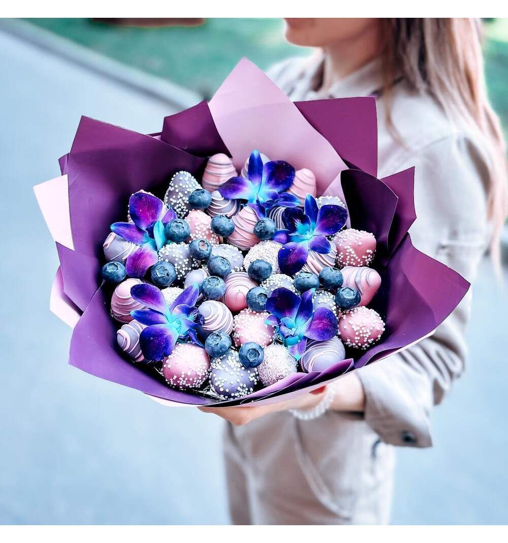 Купить Букет из клубники и орхидей космос в Лисаковске за 20 000 ₸ | интернет-магазин «Guls»