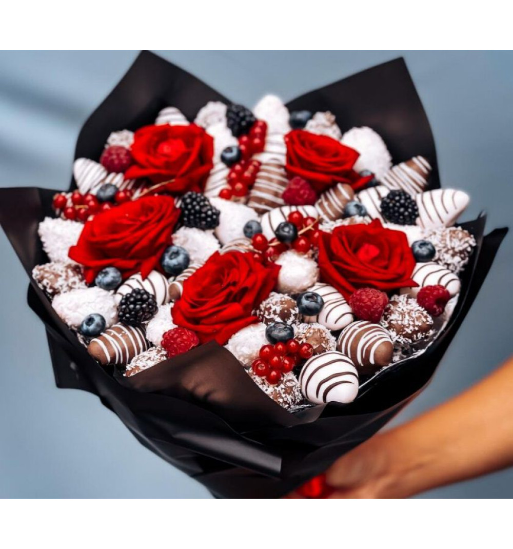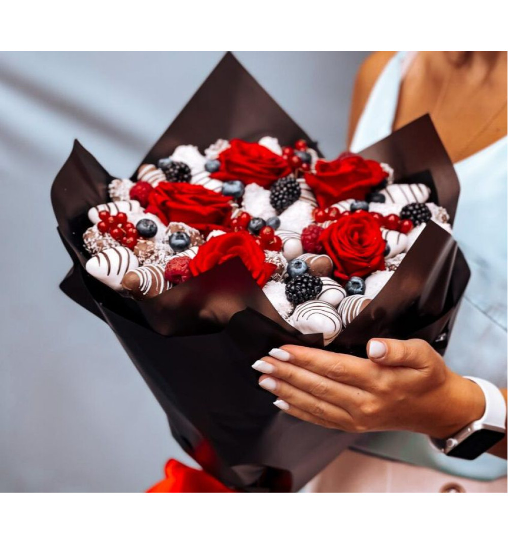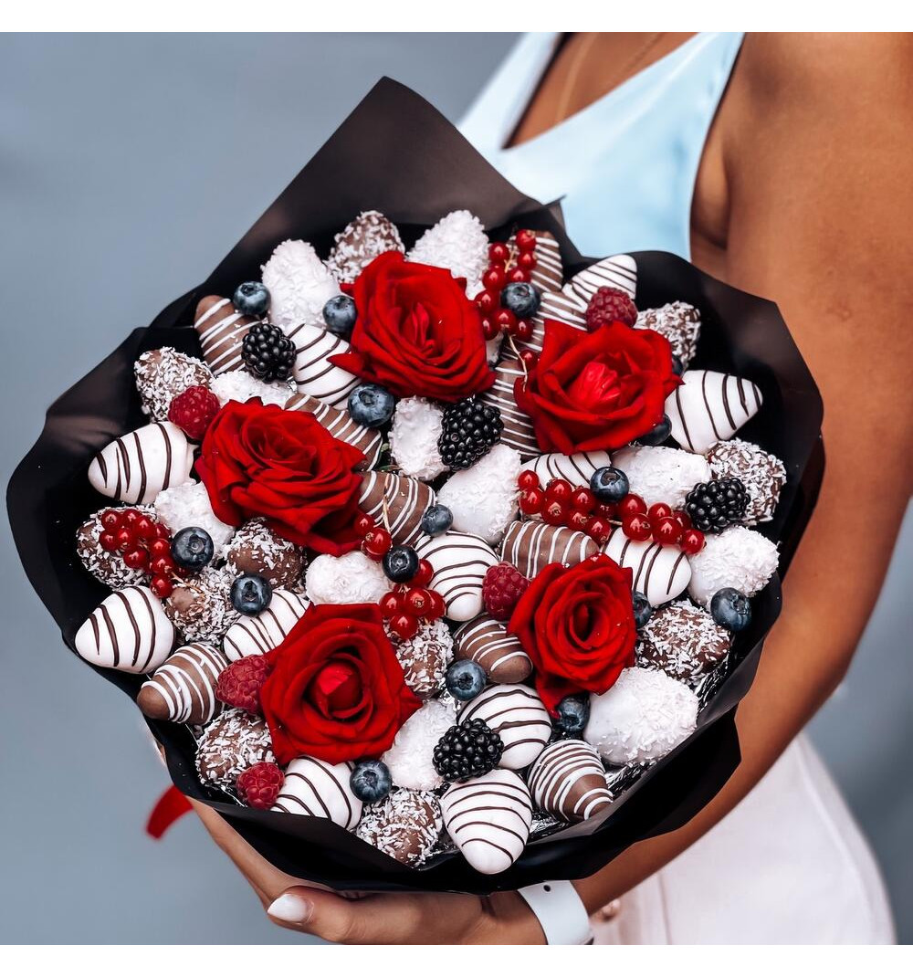 Купить Стильный букет с клубникой в Лисаковске за 20 000 ₸ | интернет-магазин «Guls»